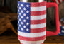 Red Rhinestone American Flag Print Handled 40oz Thermos Tumbler