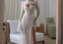 Romantic High Neck Wedding Dress Side Slit Lace Corset Dress For Bride Mermaid Floor-length Bridal Gown Customized For Women