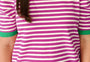 Rose Stripe Short Puff Sleeve Contrast Trim Round Neck Tee