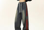 Side Stripe Webbing Denim Pants Men Vintage Washed Oversized Loose Straight Leg Pants