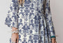 Sky Blue Boho Floral Print Lettuce Trim 3/4 Sleeve Mini Dress