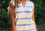 Sky Blue Stripe Split V Neck Collared Ribbed Sweater Vest