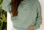 Home Tops Smoke Green Raw Edge Flower Patch Drop Shoulder Casual Top