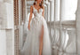 SoDigne A-Line Tulle Wedding Dress Sleeveless V-neck Lace Appliques Women Backless Boho Split Long Bridal Gown Customized