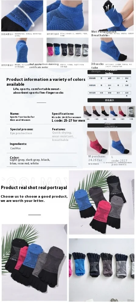 Sports Five-finger Men's CoolMax Mountaineering Marathon Socks Short Tube Women's Outdoor Professional Running Socks-3prs