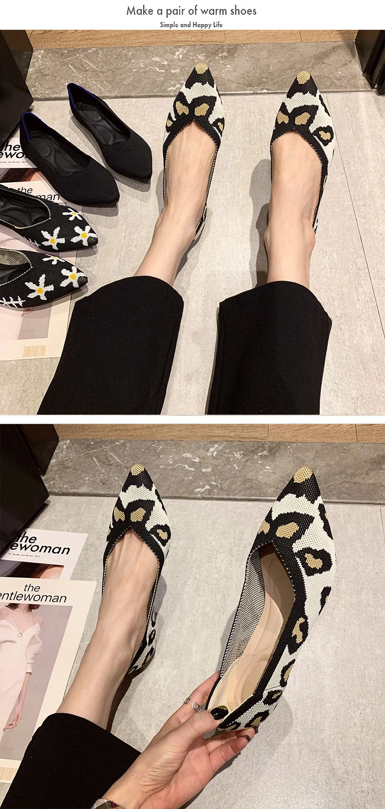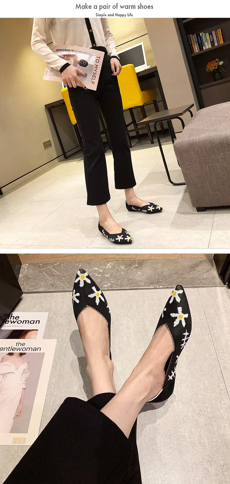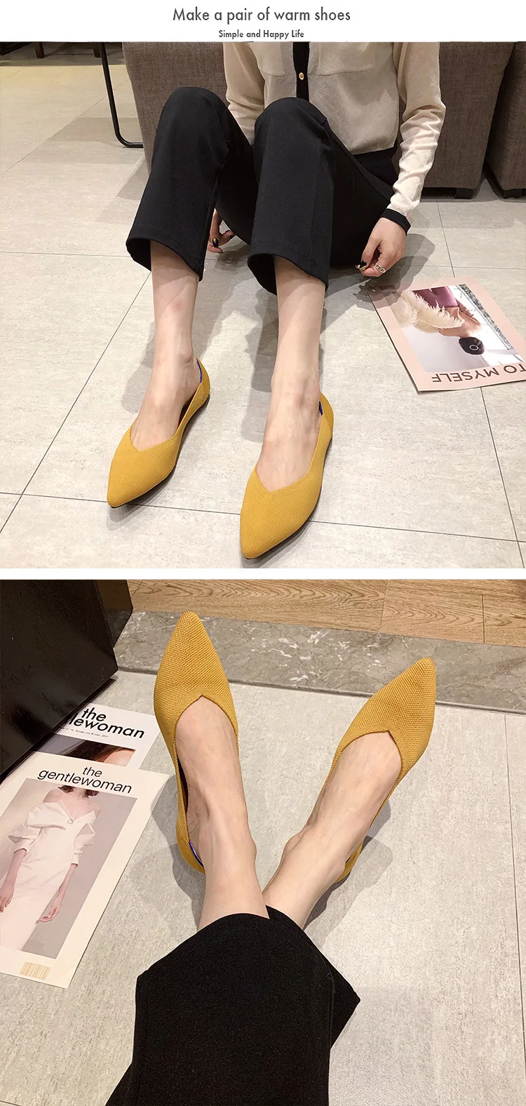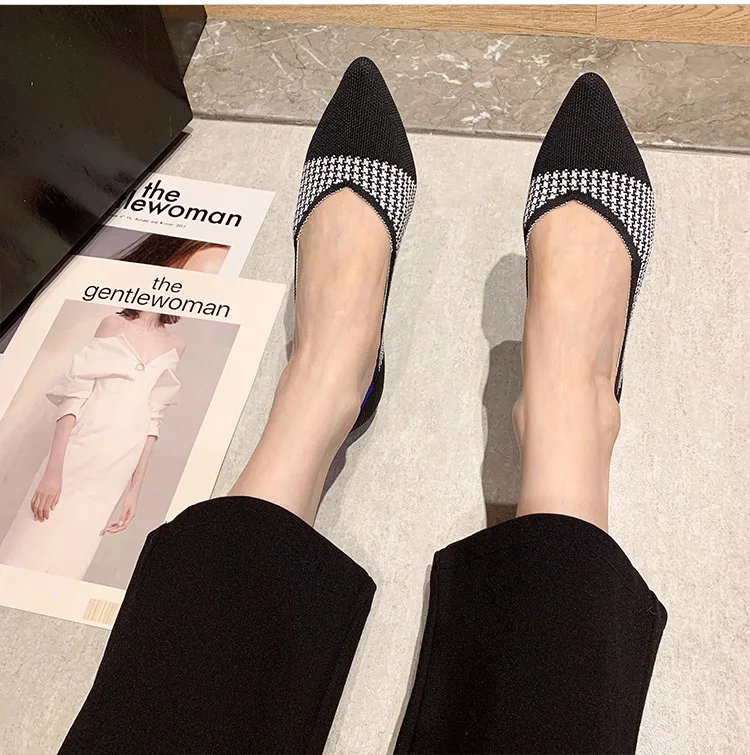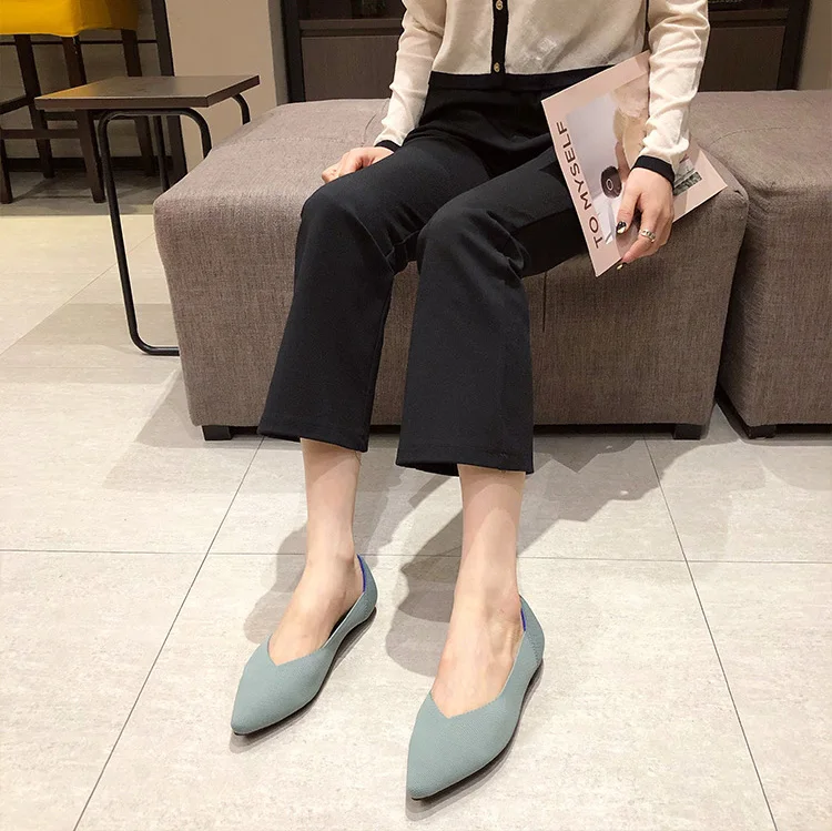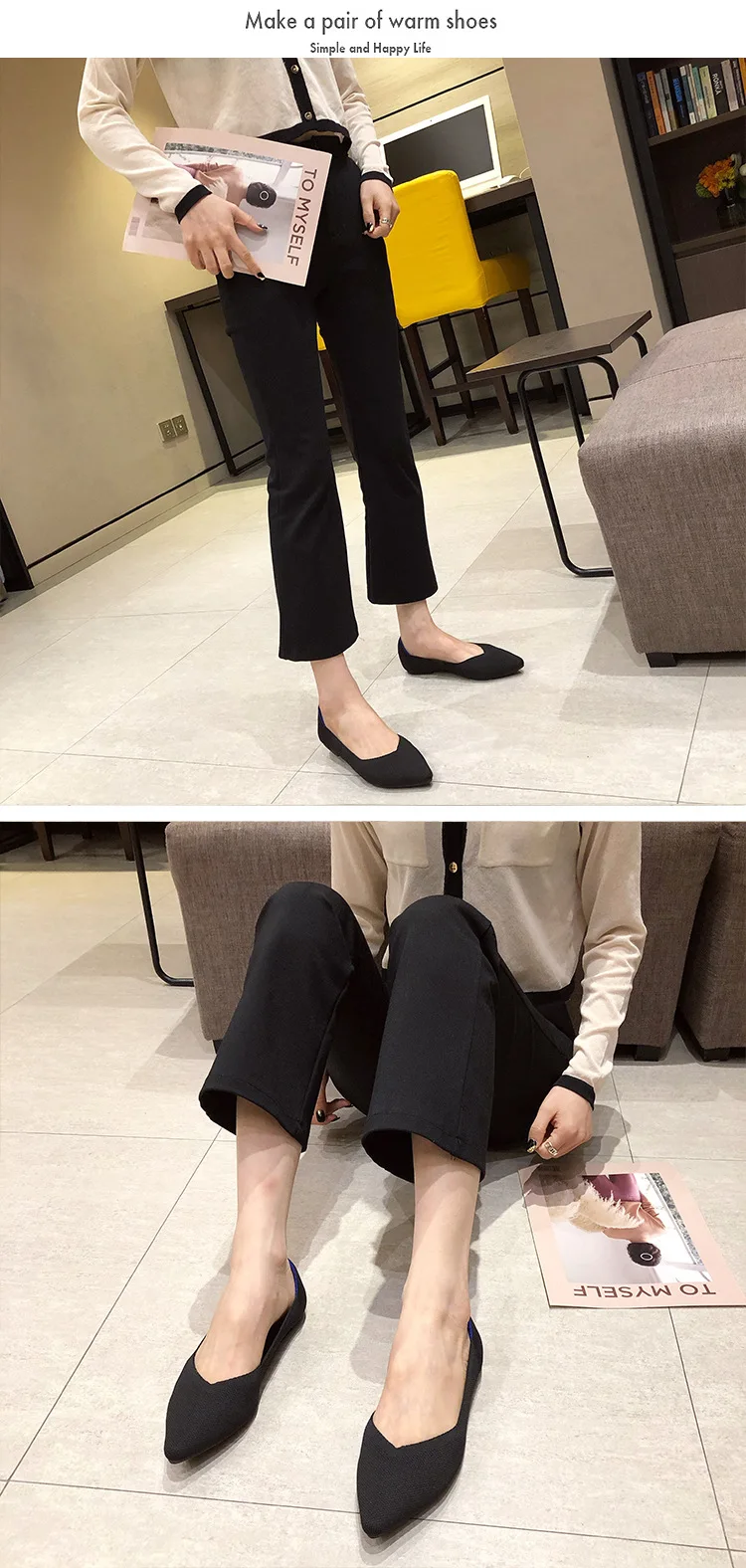 Spring and autumn flat shoes fashion leisure Women's flat shoes pointed knitting elastic comfortable boutique shoes