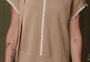 Straw Yellow Ric Rac Color Contrast Ribbed Edge Crewneck T Shirt