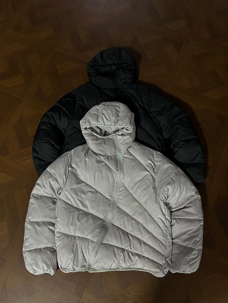 Street Style Asymmetric Zipper Deconstructed Ribbed Cotton Coat for Women, Winter Loose Warm Hooded Cotton Jacket for Men