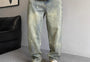 Style Winter Casual Streetwear Washed Vintage Splatter Denim Pants Men Straight Loose Oversize Versatile Tapered Jeans