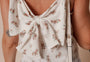 White Floral Pleated Big Bow Back Spaghetti Straps Tank Top