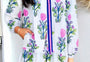 White Floral Print Contrast Striped Trim Notched Neck Long Sleeve Dress
