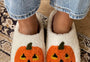 White Halloween Pumpkin Print Plush Slippers (Runs Small, Size Up)