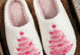 White Plush Christmas Tree Color Contrasted Liner House Slippers