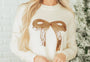 White Sequined Bow Graphic Christmas Holiday Sweater