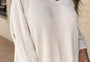 Home Product White Waffle Knit Side Slits Loose Fit V Neck Top