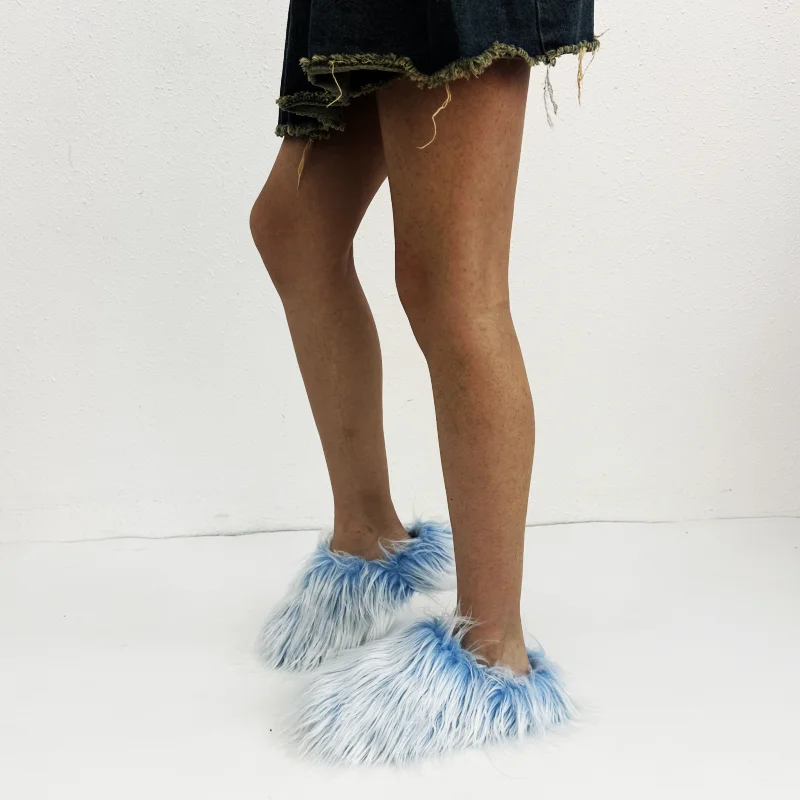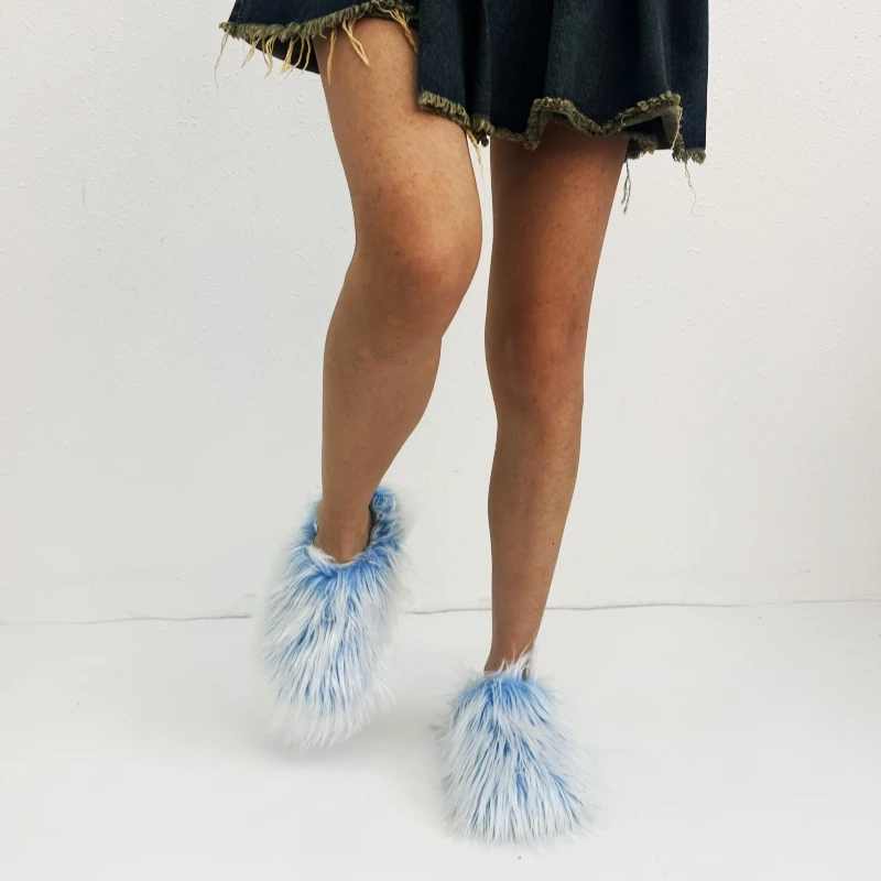Winter New Women's Genuine Leather Hair Slippers Luxury Flat Shoes Fashion Outdoor Women's 34-45 Large Hair Slippers
