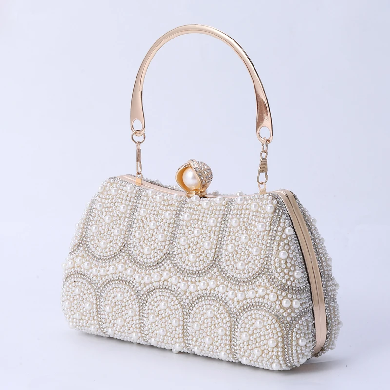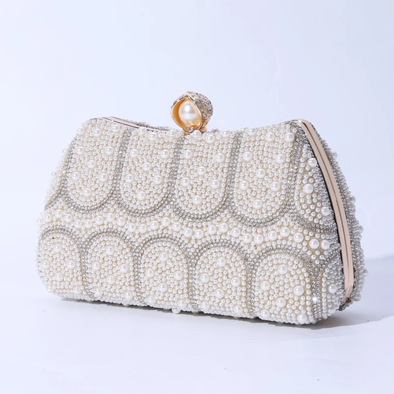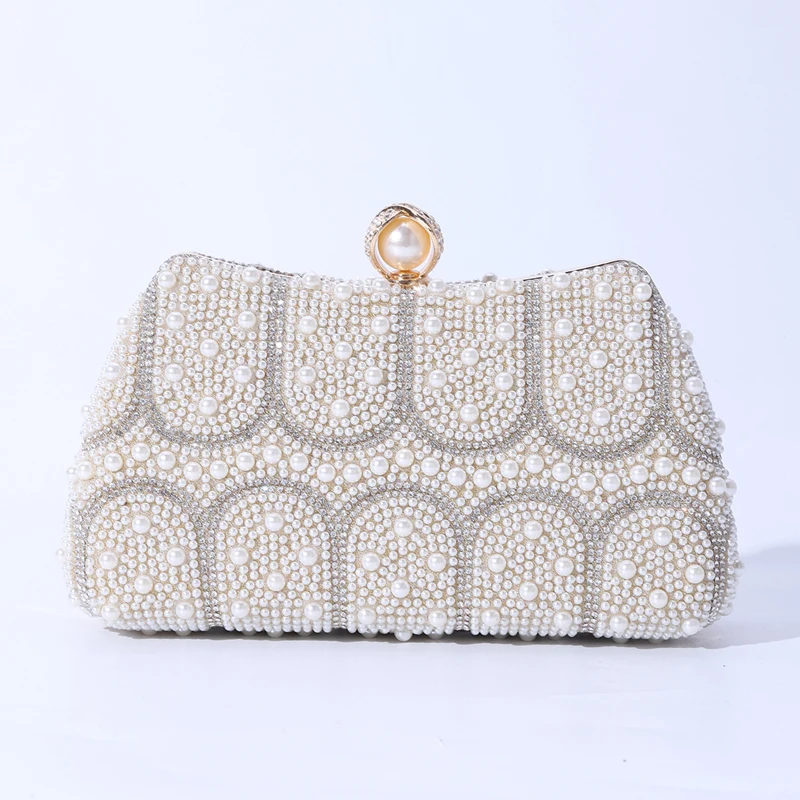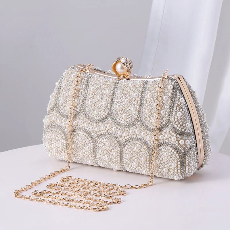Pearl Clutch Bag Bride Purse Women Wedding Prom Evening Bags Beaded Handbag with Chain
