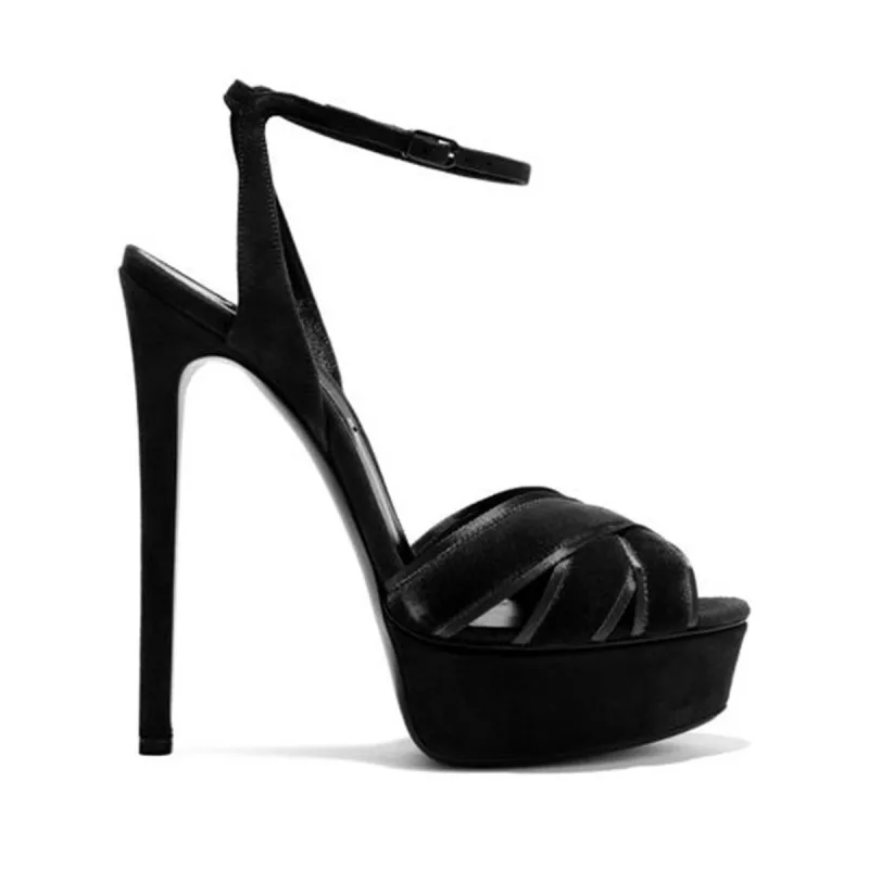 Women Sandals Heels Stiletto Heel Platform Flora Velvet Ankle Strap Heels Sandalia Pumps Summer Shoes Ladies Woman