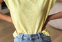 Yellow Cream Lace Patchwork Cap Sleeve Round Neck T Shirt